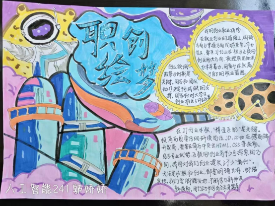 在作品设计上,同学们结合个人职业发展意向,打造出了各具特色的手抄报。有的突出创新元素,展现创业激情;有的强调职业技能展示,凸显求职实力。每一份作品都主题鲜明、创意新颖、排版美观,充分体现了同学们的艺术才华和创新能力。