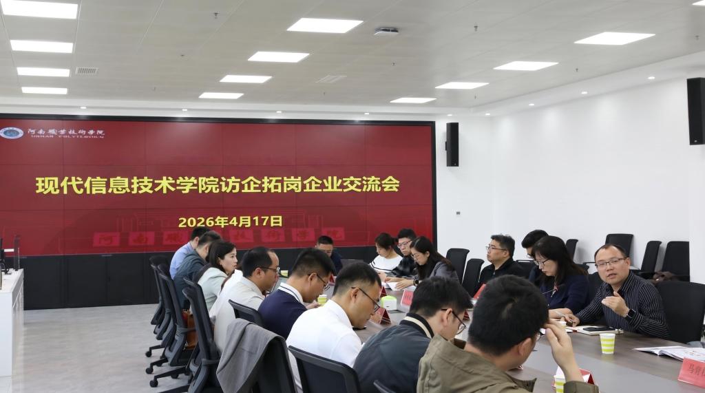 为深入推进产教融合、校企合作,扎实开展访企拓岗专项行动,拓宽学生实习就业渠道,4月17日,现代信息技术学院举办访企拓岗企业交流会。学院党总支书记、院长李纪云主持会议,河南省人工智能学会及科大讯飞、新华三、杭州金扬智能、河南合众信泰、金冠同利科技等多家行业企业专家、技术骨干与学院教师代表参会交流。