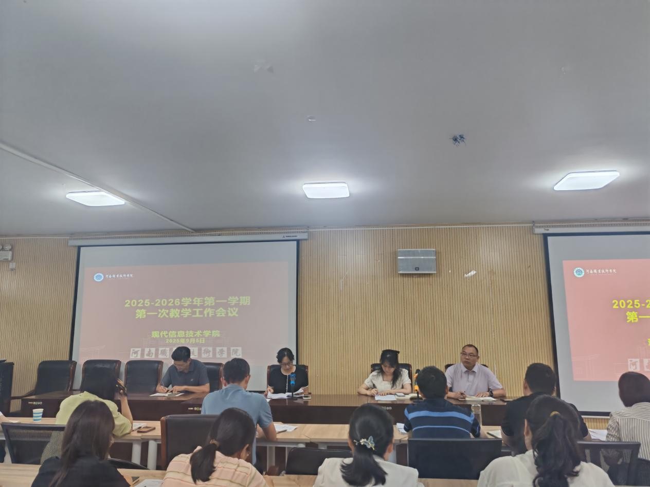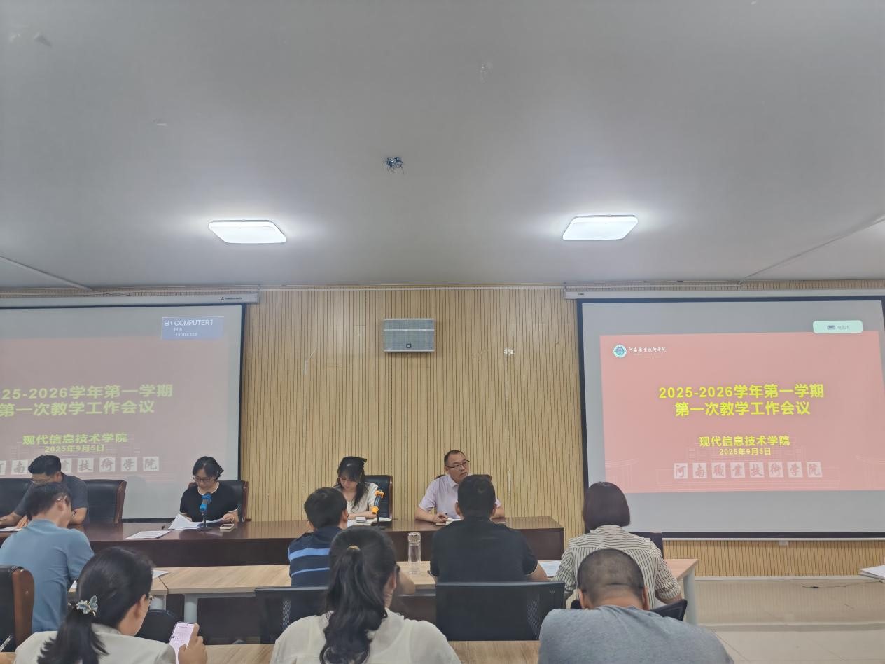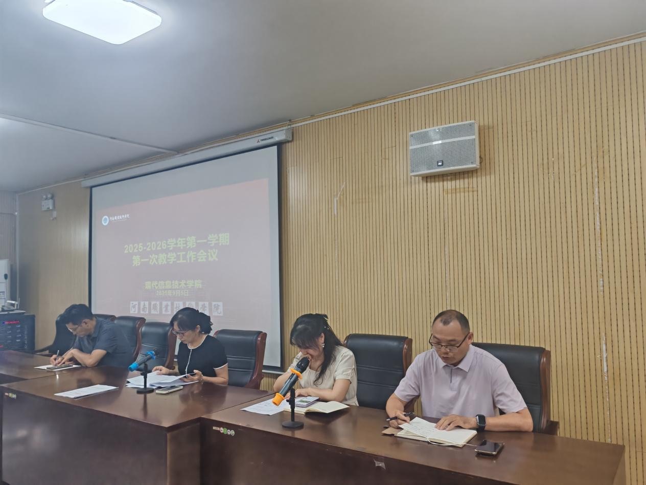9月5日下午,现代信息技术学院在笃行楼525会议室召开2025 - 2026学年第一学期第一次教学工作会议。学院领导班子及全体教职工参会,会议由院长李纪云主持。