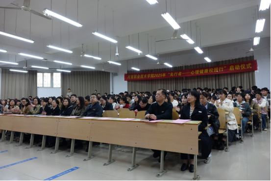 10月13日下午,由现代信息技术学院承办的河南职业技术学院2025年“先行者—心理健康校园行”活动启动仪式在明理楼1101教室举行。校党委学生工作部宋东方部长、现代信息技术学院李纪云院长、各二级学院心理健康教育工作站负责人、2025级全体心理委员及学生代表共同参与了本次活动,仪式由现代信息技术学院党总支副书记童俊艳主持。