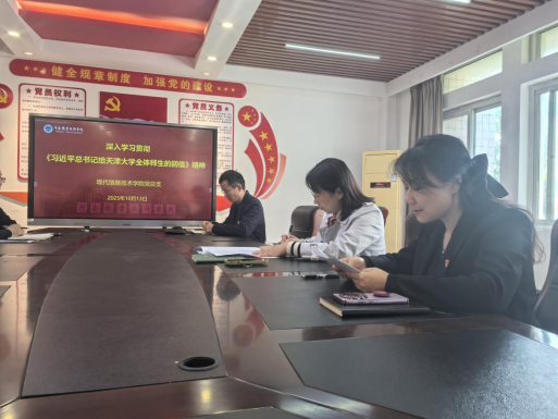 2025年10月13日,现代信息技术学院党总支在笃行楼508会议室召开专题学习会,深入学习贯彻习近平总书记给天津大学师生的重要回信精神。会议由党总支书记、院长李纪云主持,总支全体委员参加学习。