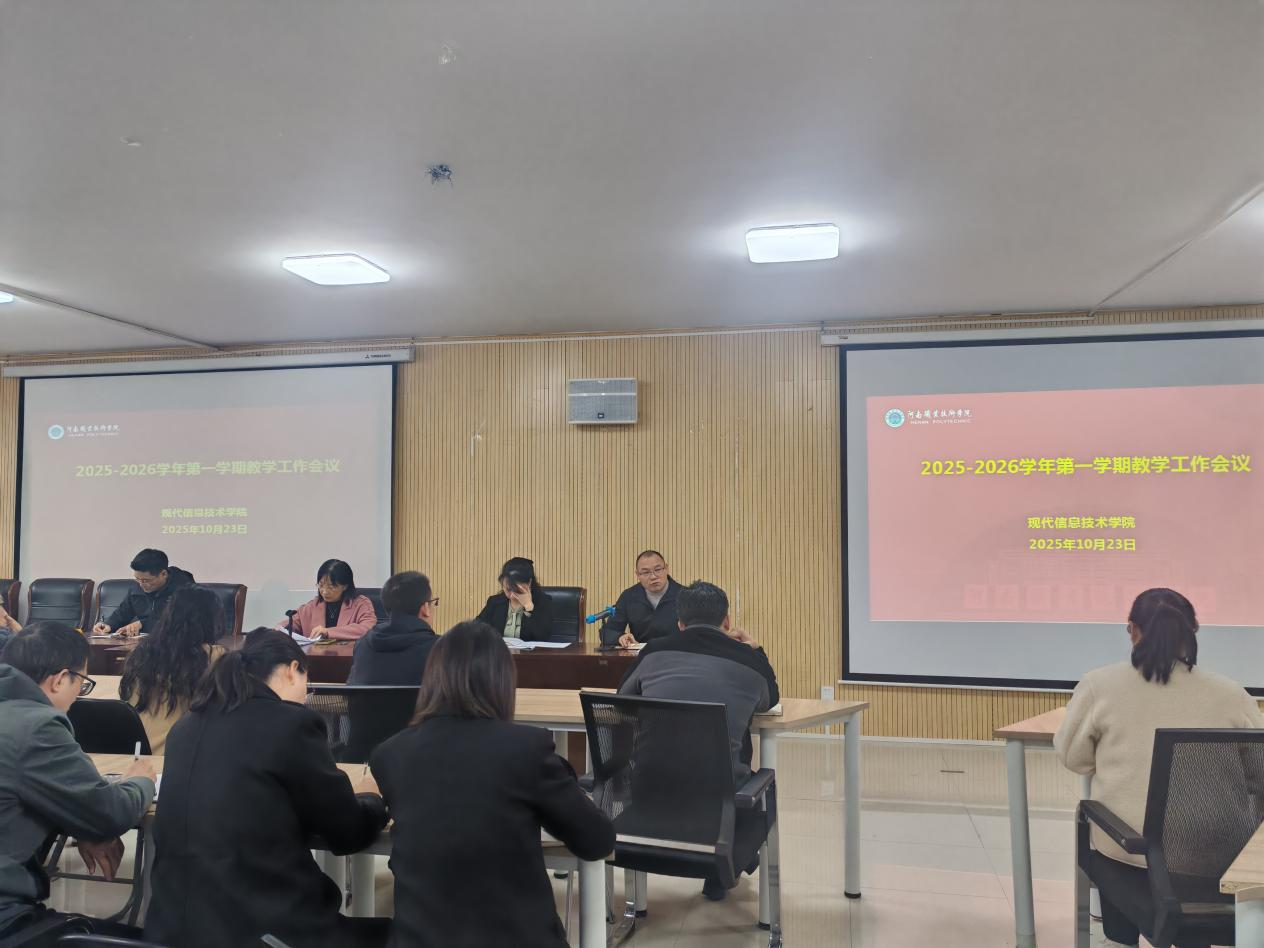 为精准落实学期教学任务,及时解决教学过程中的问题,10月23日下午,现代信息技术学院在笃行楼525会议室召开2025-2026学年第一学期教学工作会议。全体教职工参会,会议由副院长董俊磊主持。