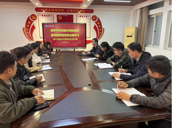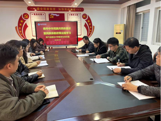 为深入贯彻落实铸牢中华民族共同体意识的重要要求,提升学生党员对民族宗教政策法规的理解与践行能力,现代信息技术学院学生党支部于10月27日精心组织开展了“铸牢中华民族共同体意识暨民族宗教政策法规学习”专题会议。