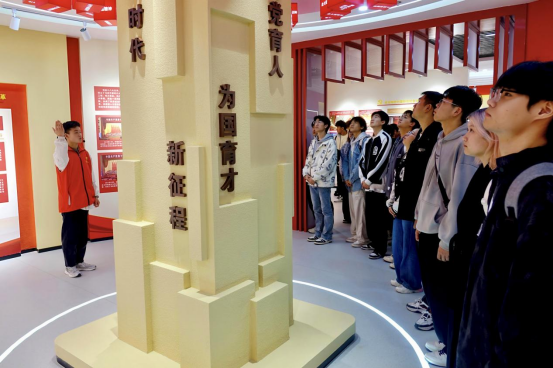 参观过程中,李超林结合“五史”学习内容与入党积极分子的责任担当,为大家讲授了一堂生动的现场党课。他强调:“‘五史’不仅是厚重的历史记录,更是照亮前路的灯塔。新时代青年要坚持以史为鉴、开创未来,自觉将个人理想融入国家发展伟业,在专业学习中锤炼过硬本领,在服务奉献中践行初心使命。”学院特色理论宣讲组织——“红‘芯’宣讲团”(“芯”寓意信息技术特色与红色内核)团长张予迪在讲解中动情地表示,“五史”蕴含的思想伟力如同璀璨的明灯,照亮了民族复兴的前行之路,使大家深刻领悟到中国共产党为什么能、马克思主义为什么行、中国特色社会主义为什么好的历史逻辑、理论逻辑和实践逻辑。