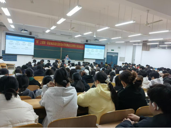 活动由王孟刚老师主持,石慧老师主讲。石慧老师结合信息技术行业岗位需求(如前端开发、大数据运维、人工智能应用等)与不同年级学生学习节奏,点明职规赛“不分年级、全员可参与”的特点——对大一学生是“理清专业与职业的关联”,对大一学生是“明确技能学习的优先级”,对大二学生是“衔接实习与岗位目标的关键”,强调赛事是全体学生“用专业能力规划成长、提前对接职场的实战平台”。