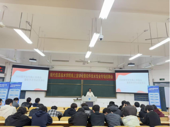 为搭建校企人才对接桥梁,助力2026届毕业生精准就业,11月3日,2026届毕业生线上双选会暨软件技术专业宣讲会在明理楼1106教室顺利举行,本次宣讲会分为两场腾讯会议进行,软件技术专业学生200余人在现场观看,2026届各专业学生以及2025届未就业毕业生线上参加双选会。本次活动聚焦软件技术领域人才需求,吸引了4家优质企业参与,为我院学子带来了丰富的就业岗位与行业资讯。会议由学院就业专干梁静老师主持。