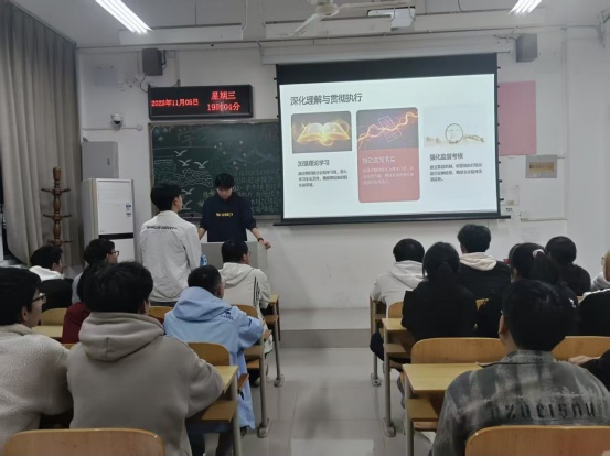 为增强学习感染力,软件技术251、257班团支部主讲人通过分享相关案例,并引用习近平总书记对青年的殷切嘱托:“青年一代要敢于有梦、勇于追梦、勤于圆梦”,生动诠释了“科技报国”的初心如何在平凡岗位上落地生根。让学生认识到“中国式现代化”并非抽象概念,而是源于每一次代码编写、每一轮技术攻关的扎实积累。
