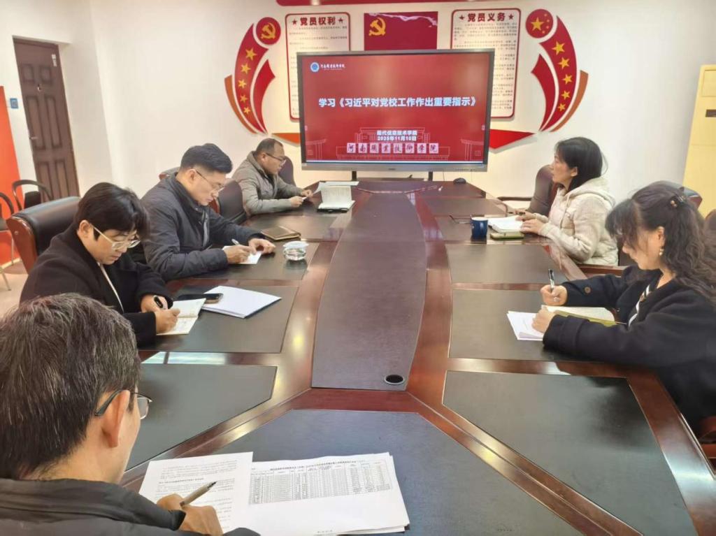 11月10日上午,现代信息技术学院党总支在学院会议室召开集中学习会议,专题学习习近平总书记对党校工作作出的重要指示精神。会议由党总支书记、院长李纪云主持,党总支全体委员参加。