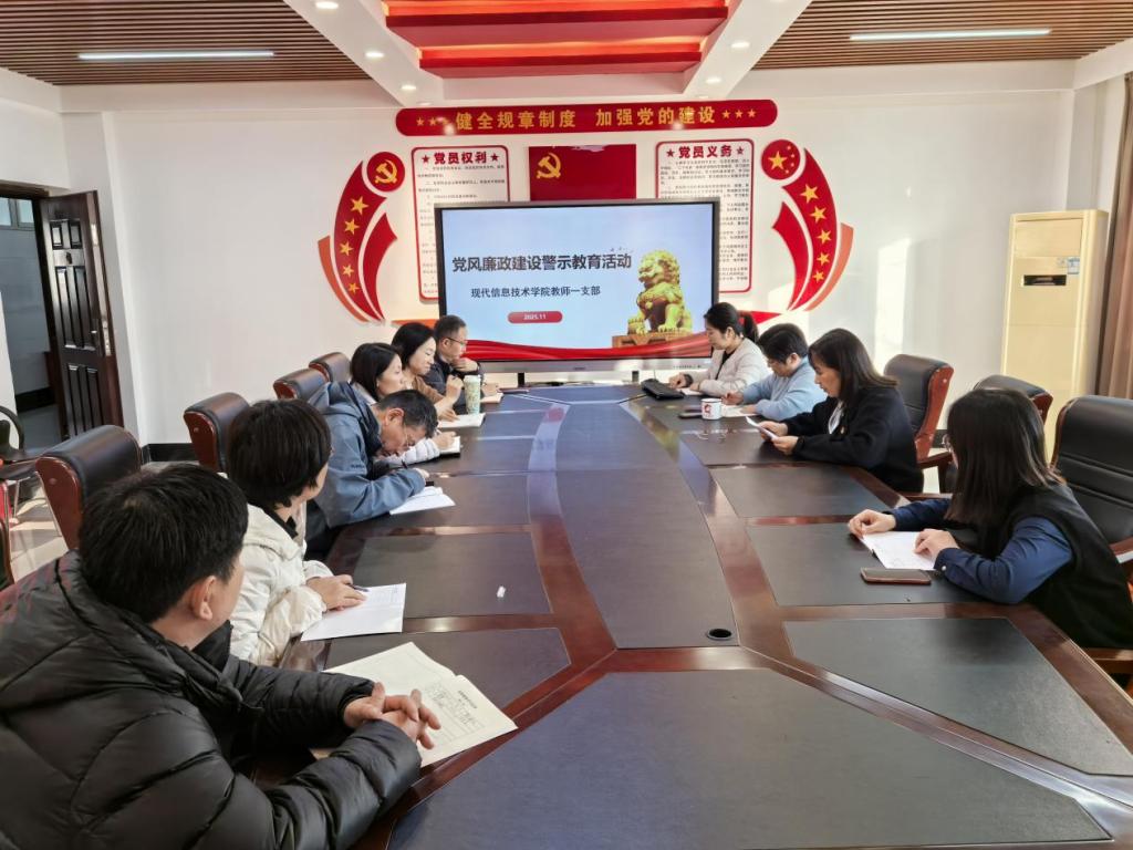 11月20日下午,现代信息技术学院教师第一党支部在笃行楼508会议室开展党风廉政建设警示教育活动。本次学习活动由党支部书记翟慧同志主持,支部全体党员参加了会议。
