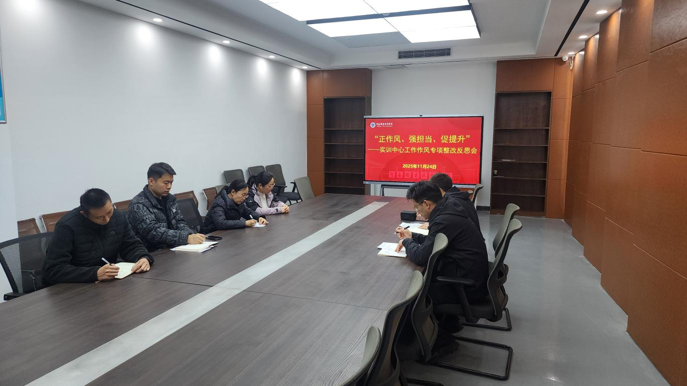 实训中心全体管理人员结合自身岗位职责,围绕安全管理、设备维护等重点问题,逐一进行自我反思发言。大家主动认领问题、深刻剖析原因,纷纷表示将以此次会议为警醒,坚决整改工作中的松懈心态,严格遵守安全管理制度,加强设备日常巡检与维护,以更优质的服务保障实训教学顺利开展。