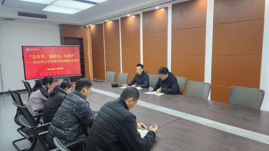 11月24日下午,现代信息技术学院实训中心在笃行楼3楼会议室召开“正作风、强担当、促提升”工作作风专项整改反思会。会议直指实训中心近期工作短板,通过问题查摆、批评教育与反思交流,推动全体管理人员拧紧责任弦、筑牢安全线。现代信息技术学院副院长赵大鹏,实训中心主任丁玉涛及中心全体管理人员参加了此次会议。