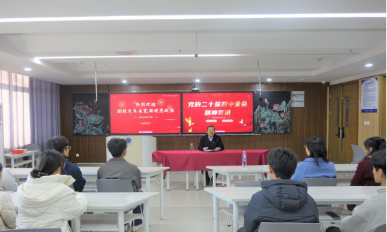 12月3日,河南职业技术学院党委委员、副校长朱永宽走进现代信息技术学院软件254班,开展党的二十届四中全会精神宣讲。现代信息技术学院党总支书记、院长李纪云,党总支副书记童俊艳等教师代表共同参加。