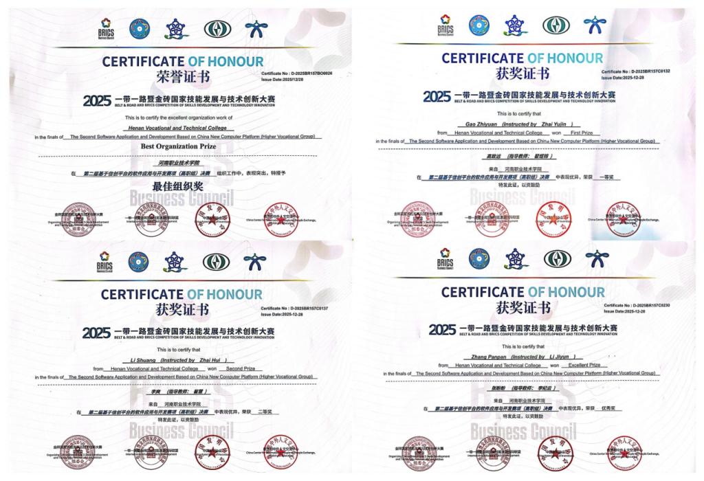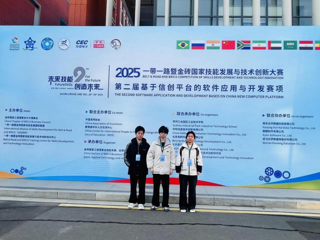12月26日至28日,由金砖国家工商理事会中方理事会、一带一路暨金砖国家技能发展国际联盟等权威机构联合主办的2025一带一路暨金砖国家技能发展与技术创新大赛-第二届基于信创平台的软件应用与开发赛项总决赛在江苏省苏州市圆满落幕,来自国内外104所院校的223名选手参加此次大赛。