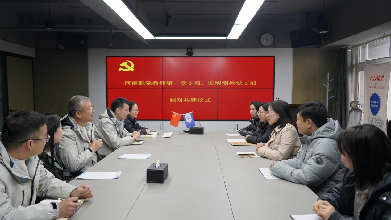 为深入推进党建与业务深度融合,加强校企党组织交流合作,1月4日,现代信息技术学院党总支书记李纪云同志带队,支部书记翟慧及党员代表张璞、王俊平、梁静一行前往河南宏博测控技术有限公司,开展支部互融共建活动。河南宏博测控技术有限公司党支部书记卜祥洲热情接待了学院一行。
