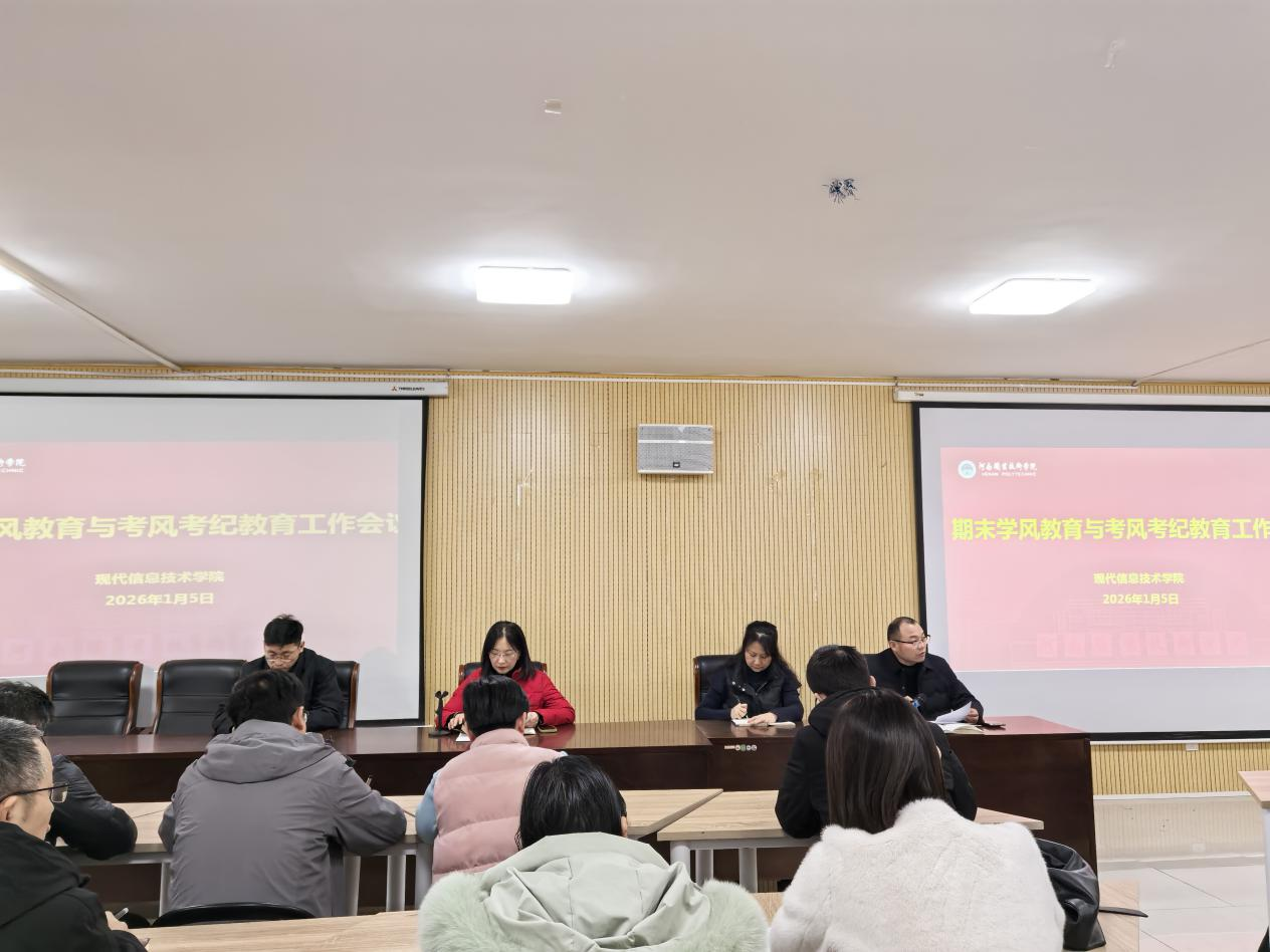 此次会议既明确了考务工作的刚性要求、压实了监考履职责任,更细化了期末考试组织实施的关键举措,为保障期末考试平稳有序、公平公正开展筑牢了制度屏障。(供稿:王俊平,审稿:董俊磊)