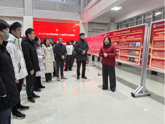 为深入学习贯彻习近平总书记关于“大思政课”建设的重要指示精神,扎实推进课程思政与思政课程同向同行,切实提升全体教职工立德树人的使命感与责任感,1月5日下午,现代信息技术学院党总支组织全体教职工赴勤业楼一楼大厅,集体参观学校“大思政铸魂工程”成果展。本次活动作为学院2026年首次主题党日活动,由党总支书记、院长李纪云带队,全体党员及非党员教师共同参与。