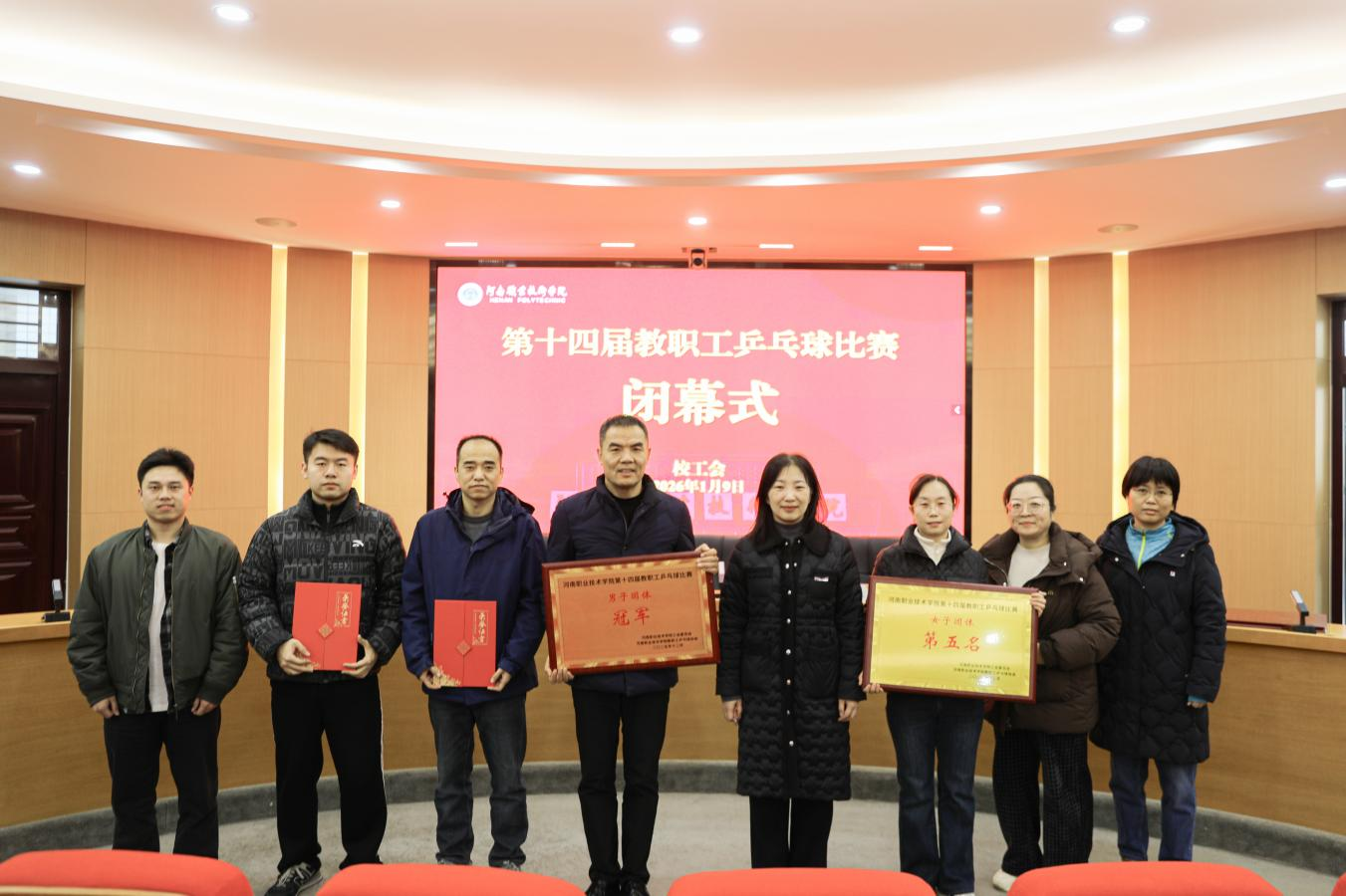 1月9日上午,我校第十四届教职工乒乓球比赛在勤业楼239会议室圆满闭幕,本次比赛共有37支代表队,318名运动员参赛。校党委副书记、工会主席田华出席闭幕式,并为获奖团体与个人颁奖。我院分工会在本届比赛中表现突出,首次摘得男子团体冠军,女子团体亦荣获第五名,展现了学院团结进取、奋勇争先的良好风貌。