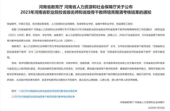 近日,河南省教育厅、河南省人力资源和社会保障厅联合公布2023年河南省职业院校省级名师和省级骨干教师培育期满考核结果,现代信息技术学院张大鹏、张艳、王俊平三位教师顺利通过考核,正式获评“河南省职业院校省级骨干教师”称号。