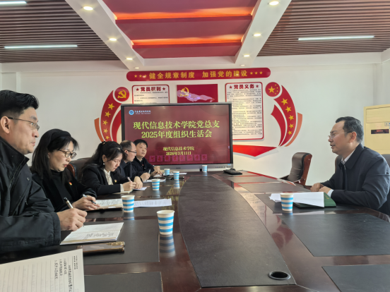近日,校党委委员、副校长朱永宽深入现代信息技术学院,全程指导学院党总支组织生活会。会议紧扣“贯彻党的二十届四中全会精神、落实中央八项规定精神、推进作风建设常态化长效化”主线,旨在深入推进党的自我革命,强化党性修养,凝聚发展合力。学院党总支书记、院长李纪云主持会议。