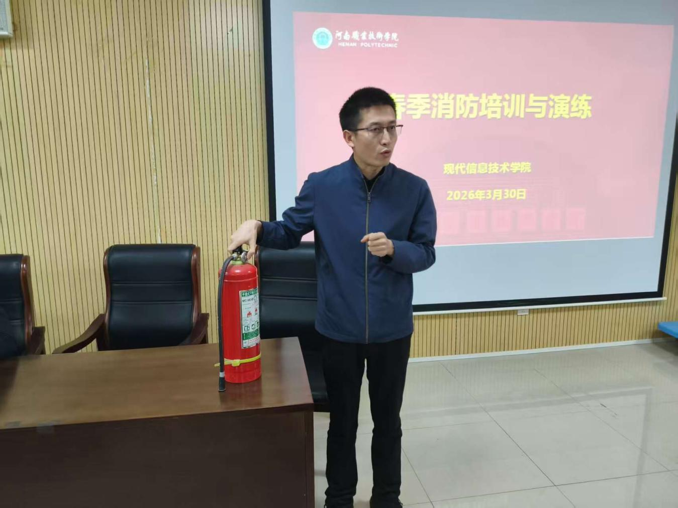 为切实提升师生消防安全意识与应急处置能力,筑牢校园消防安全防线,3月30日,现代信息技术学院于笃行楼525组织开展春季消防培训及演练活动。学院院长兼党总支书记李纪云、副书记童俊艳、副院长赵大鹏、董俊磊,以及学院全体教师、学生代表共同参与了本次培训与演练。