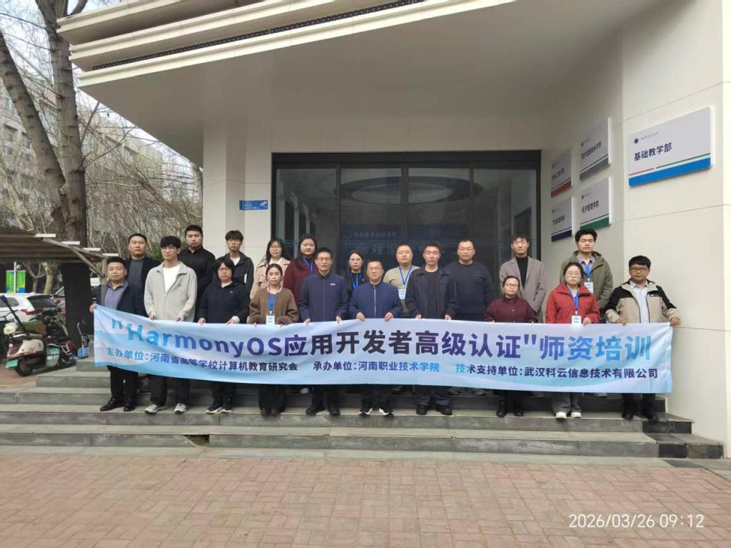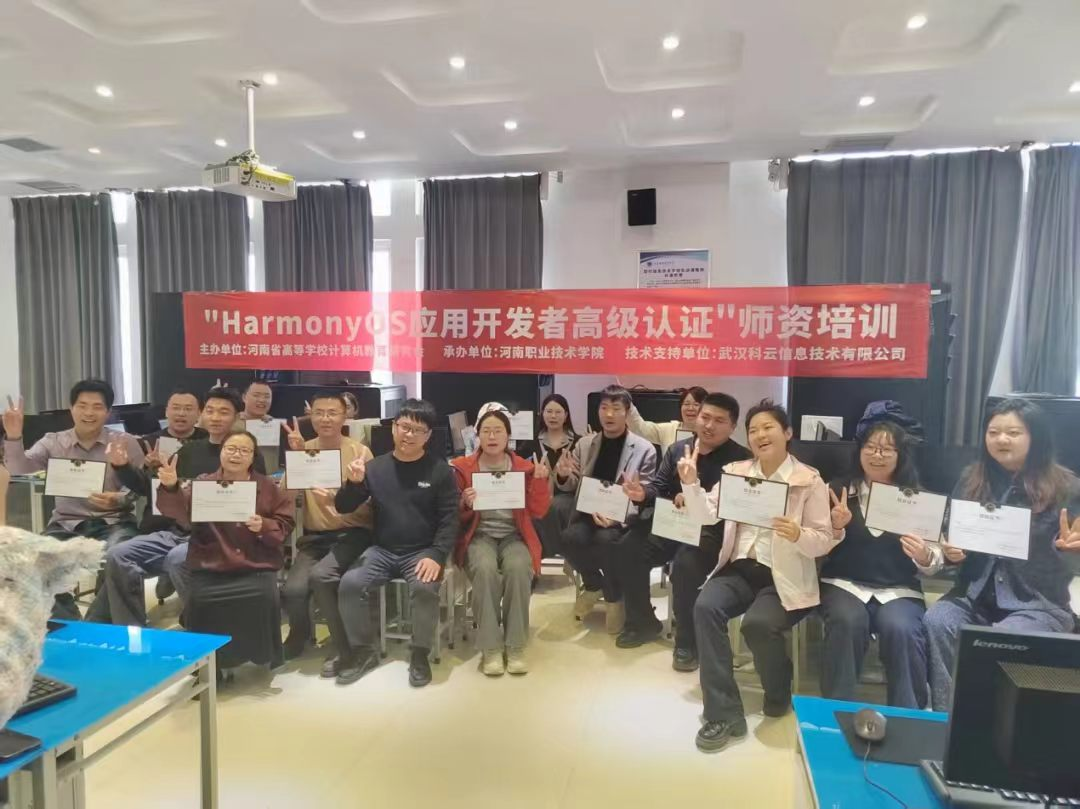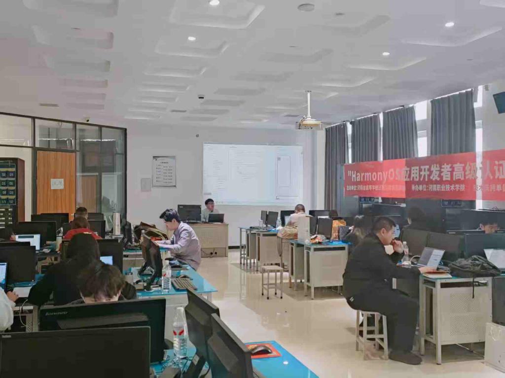 3月26日至28日,由河南省高等学校计算机教育研究会主办、河南职业技术学院承办、武汉科云信息技术有限公司提供技术支持的“HarmonyOS应用开发者高级认证”师资培训班,在笃行楼3楼现代信息技术学院实训中心顺利举办,来自全省多所高校的计算机专业骨干教师齐聚一堂,参与了此次专项培训。
