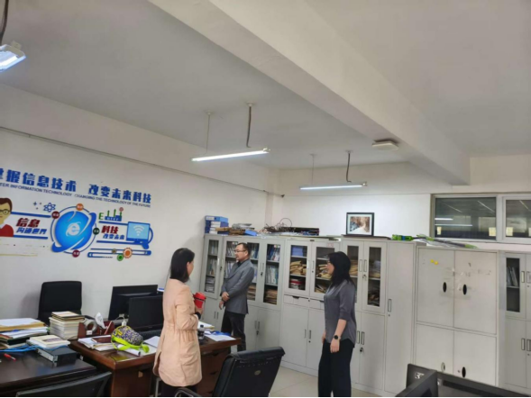 检查组逐一查看学院办公室,细致检查用电规范、设备运行及消防设施配备情况,提醒教职工离岗前切断电源、关好门窗。李纪云强调,假期安全无小事,全体人员要树牢底线思维,将安全管理与日常规范紧密结合。