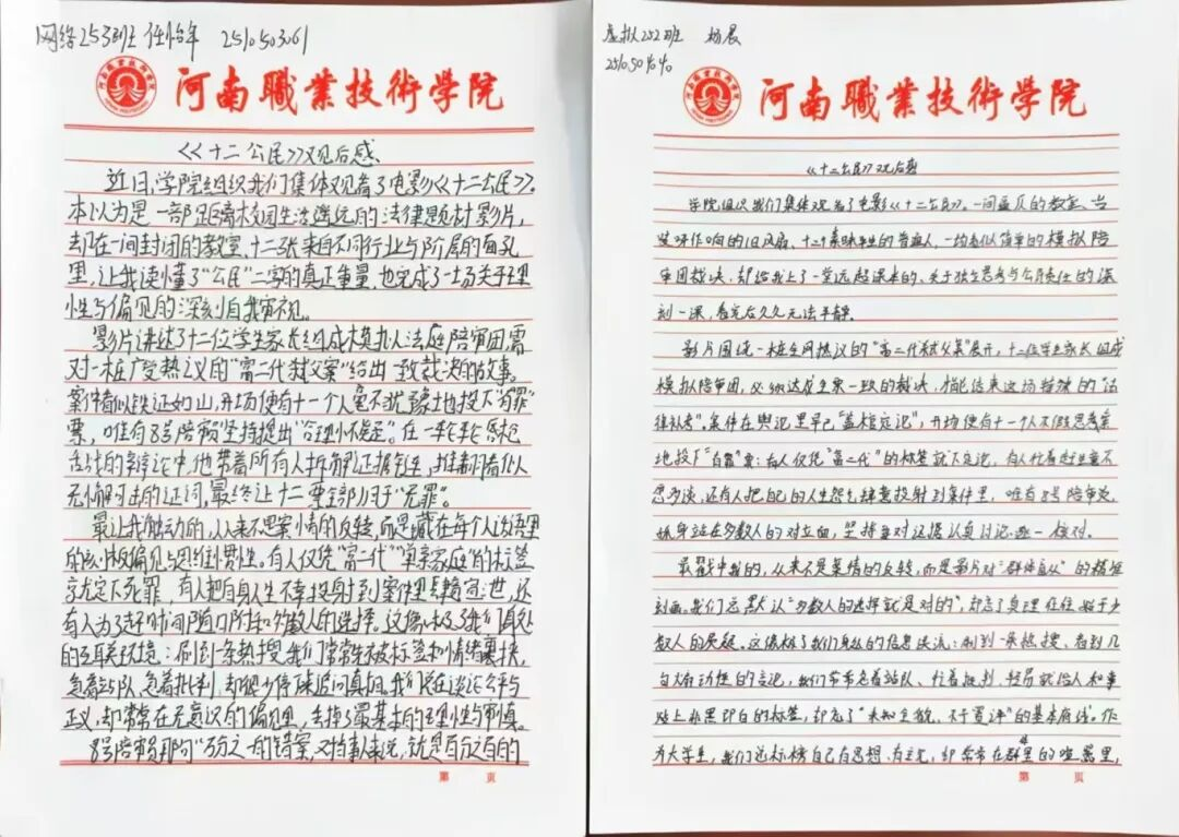 在活动设计中,学院注重“集中观影+沉浸分享+感悟沉淀”三位一体模式,并融入知识竞赛的互动机制,推动法治教育从“一时活动”向“常态长效”转变。通过教师撰写观后感、学生影评分享会、竞赛复盘等环节,形成“学习—反思—践行”的闭环。学院明确要求各教研室将法治教育纳入教研活动内容,依托“一站式”学生社区持续开展普法宣传,推动法治精神内化于心、外化于行。