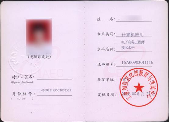 四、证书样本