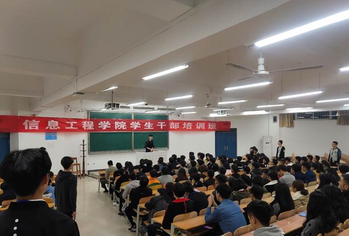 11月19日下午六点,信息工程学院学生干部培训在教学楼3110举行。院学生会、团总支全体成员及各班主要干部参加。