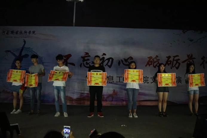 整台演出歌舞、小品、相声、话剧、魔术等近20个节目。台上演得用心,台下看得投入,整个演出过程掌声、笑声不断,特别是小品《外卖来敲门》更是把同学们的热情推向了高潮。最后在文艺汇演结束前由学生干部为“最美大学生”“优秀宿舍”“优秀学生干事”进行颁奖。(供稿:李超林 审稿:李纪云)